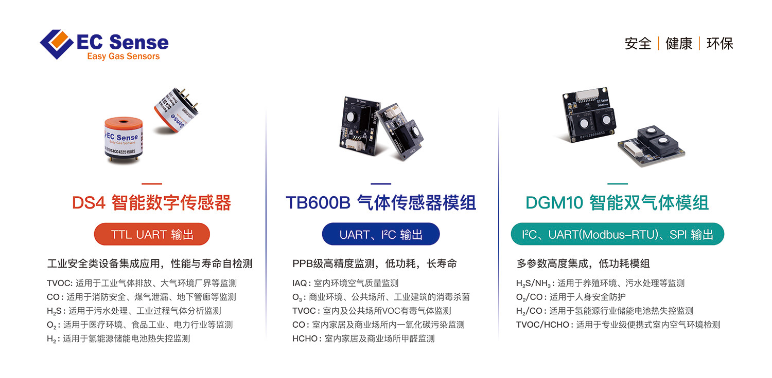 EC Sense 针对本次展会特推出FDM工业气体报警器、StoxPro智能气体探测器、ECgaspoint无线气体监测仪、DS4智能数字传感器、TB600B气体传感器模组以及DGM10智能双气体模组。