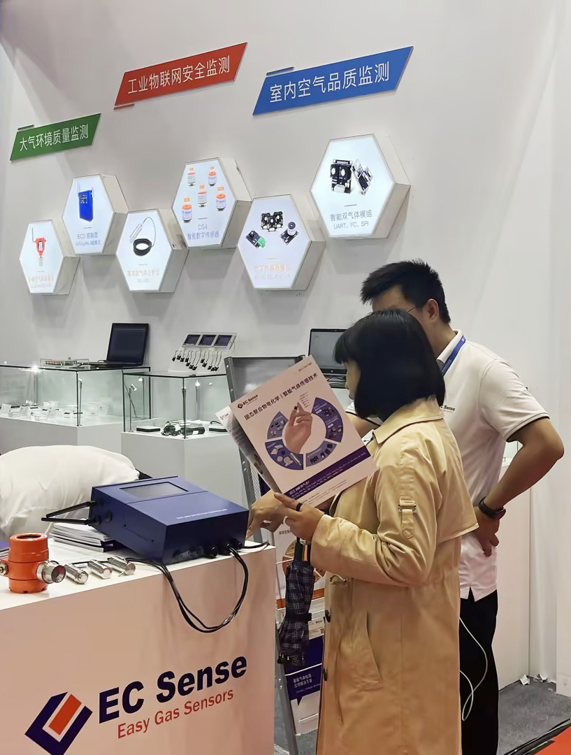在展会开幕的第一天,现场就迎来了大量的观众前来参观与咨询,了解我们EC Sense的技术优势与特点,并对我们推出的传感器、控制器以及探测器和模组表现出浓厚的兴趣。我们也是为此一一介绍与解答。