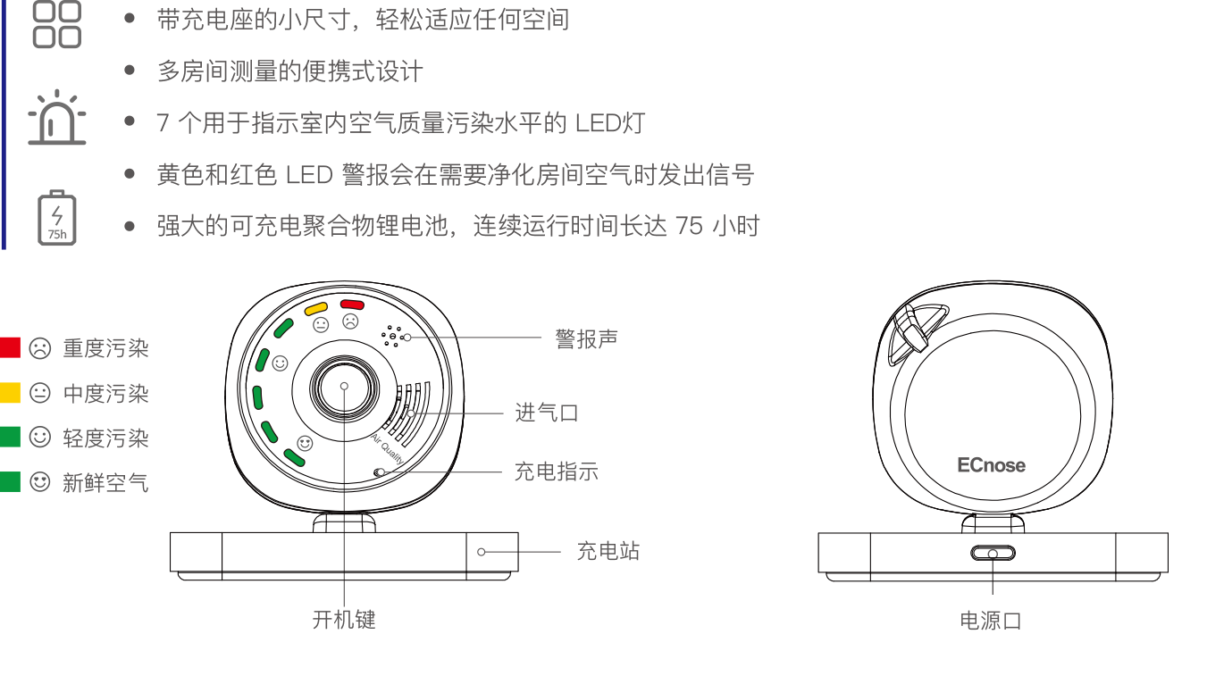 · 强大的可充电聚合物锂电池,连续运行时间长达75小时