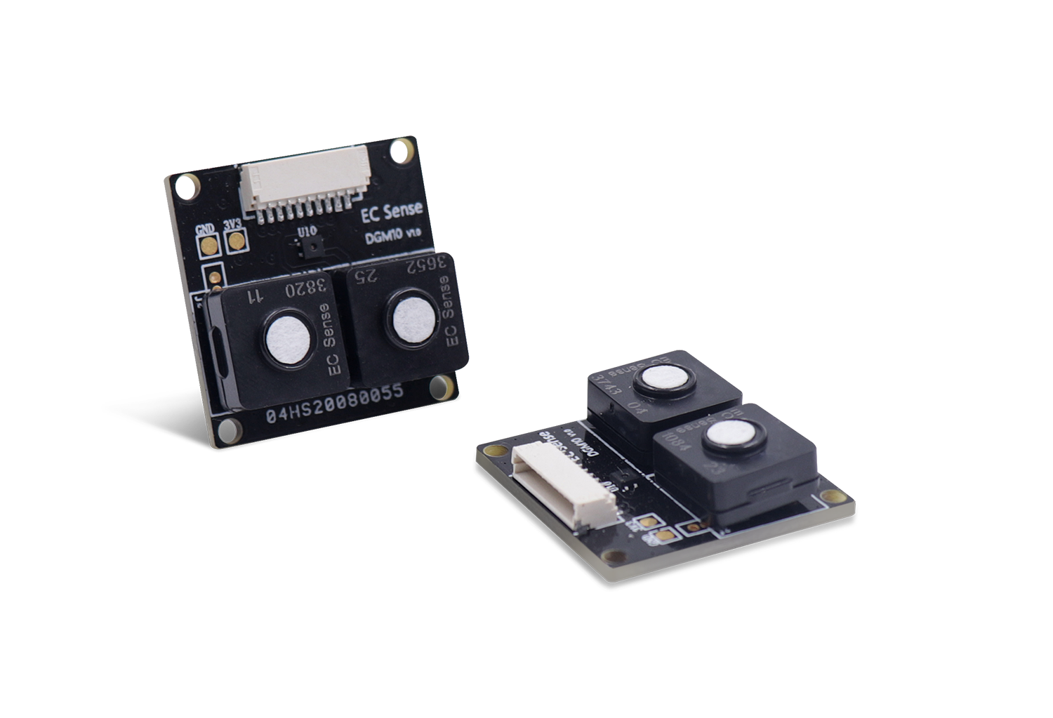 在本次展会中,我们特推出PPB级环境空气质量传感器,DGM10智能双气体传感器模组采用多信号输出方式,I2C、UART(Modbus-RTU)、SPI,具有寿命与性能自检、失效判断功能。