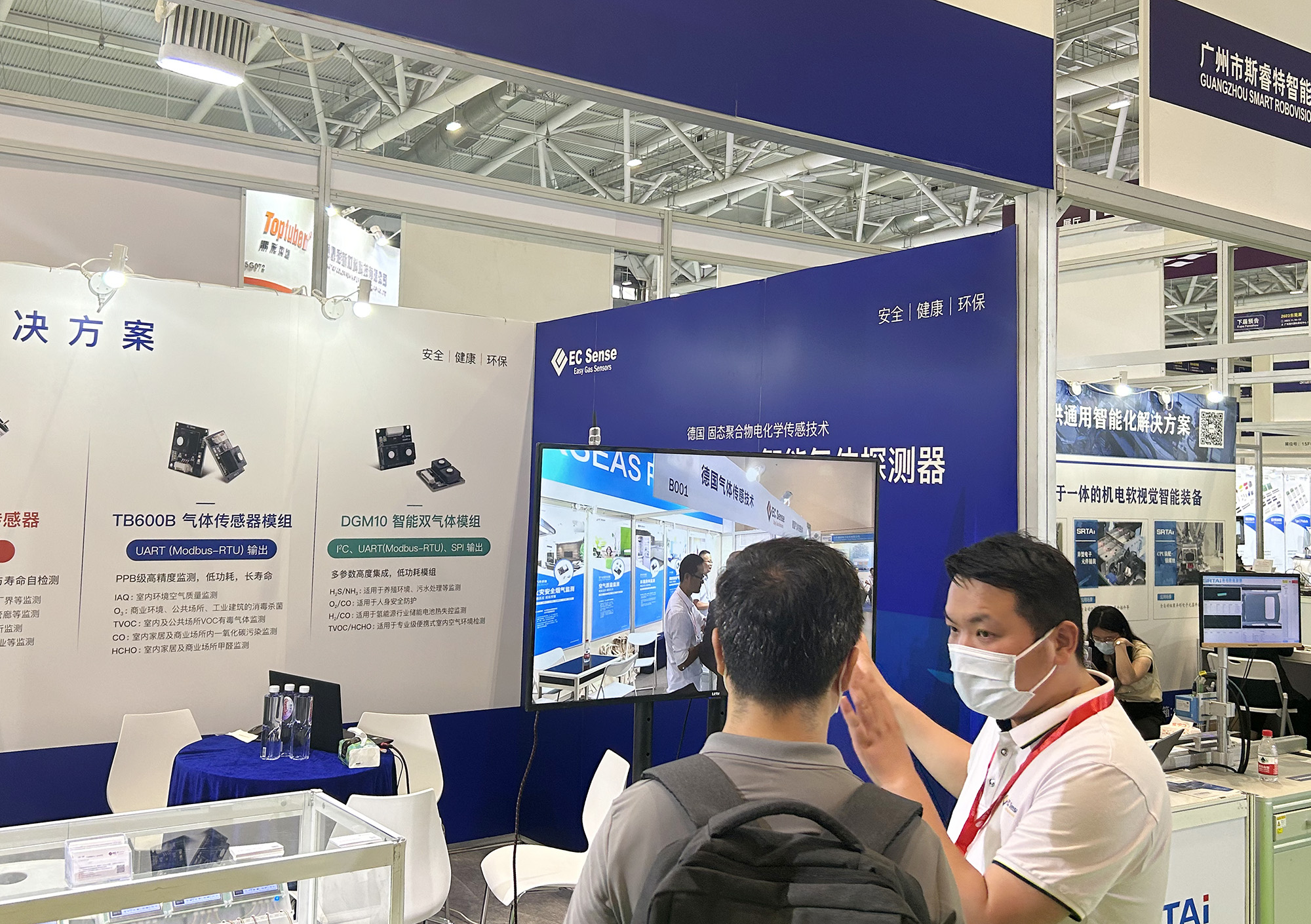 在本次展会中我们针对智能气体传感技术解决方案推出StoxPro智能气体探测器、FDM工业气体报警器、ECtox气体侦测器、ECgaspoint气体监测仪、DS4智能数字传感器、TB600B气体传感器模组以及DGM10智能双气体模组,大家可前往展台进行产品的参观。