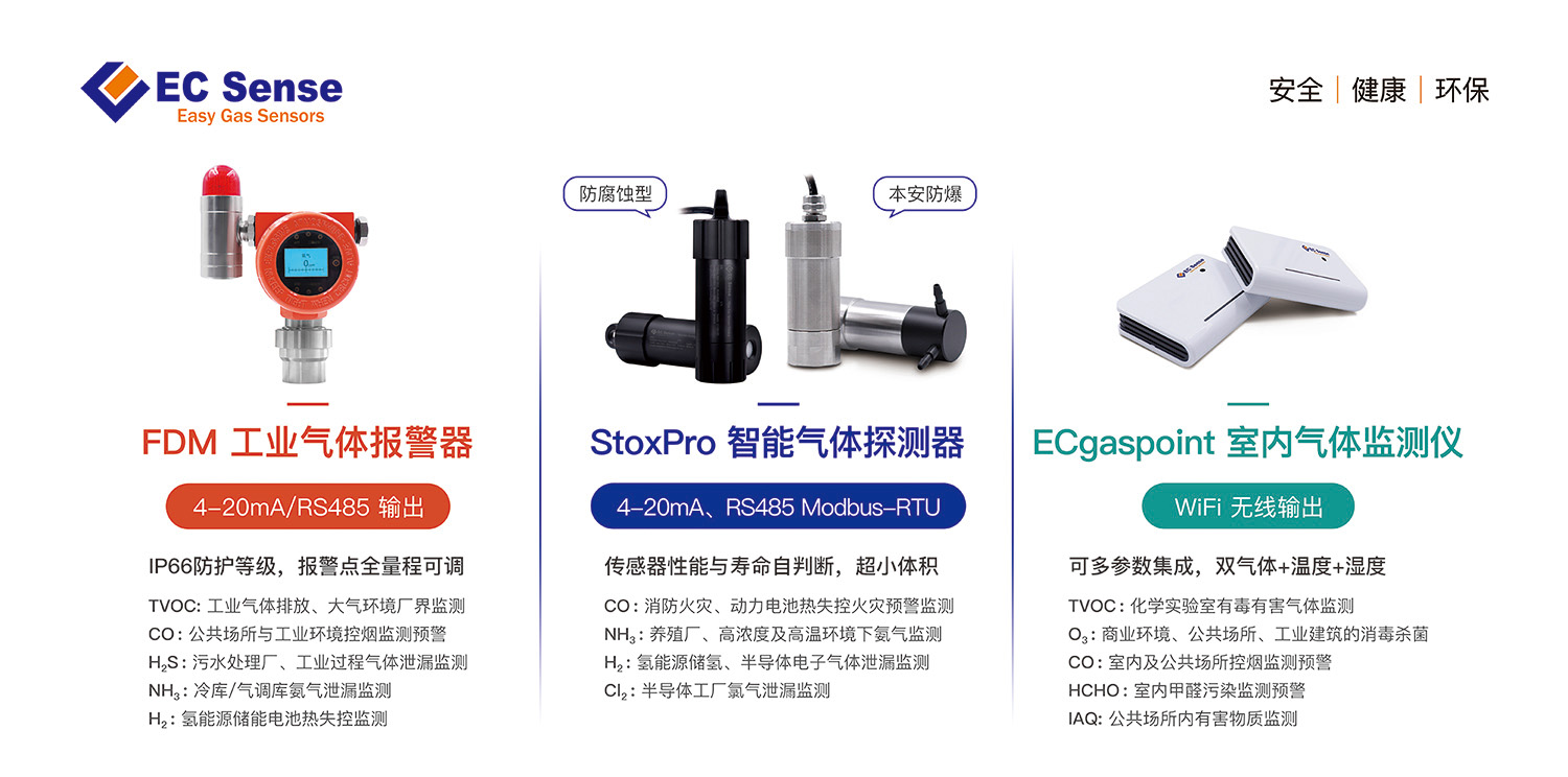 EC Sense 针对本次展会特推出FDM工业气体报警器、StoxPro智能气体探测器、ECgaspoint无线气体监测仪、DS4智能数字传感器、TB600B气体传感器模组以及DGM10智能双气体模组。